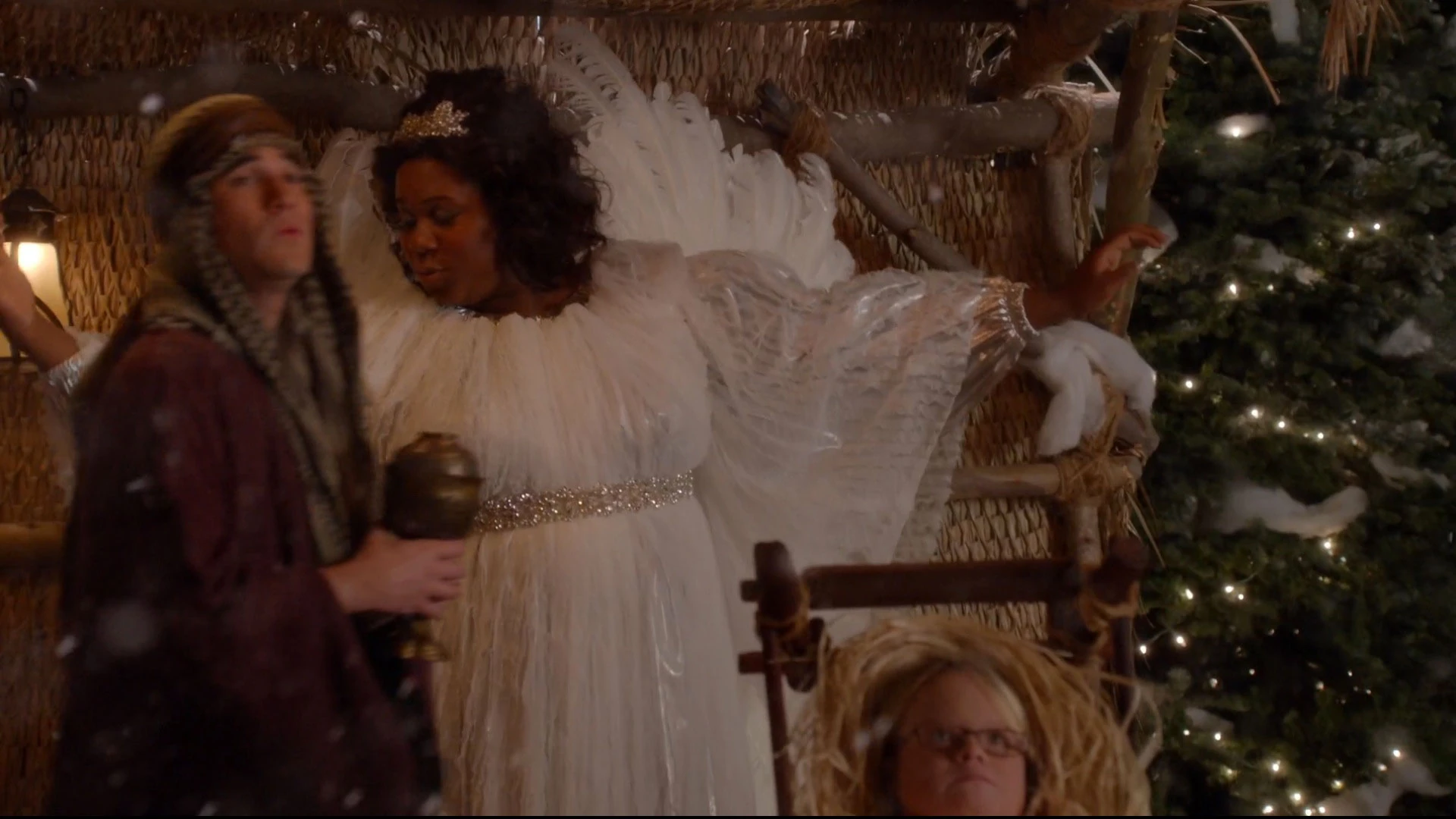 darüber, ist aber enttäuscht, wenn sie auf der Liste der Rollenverteilung liest, dass sie nicht Maria, sondern Balthasar spielt. Marley erzählt ihnen daraufhin, dass Kitty die Jungfrau Maria gern spielen möchte, sich aber nicht für würdig hält. Um sie vom Gegenteil zu überzeugen, was auch in ihrem Interesse ist, da sie hoffen, dass sie vielleicht etwas netter zu ihnen wird, hat Unique eine Idee, wie sie sie dazu bringen können, die Rolle an zu nehmen. So kommt es, dass sie bei ihrer Probe für das Krippenspiel eine aufreizende Version von Love Child performen, was Kitty nicht duldet und meint, dass sie Maria spielt. Dadurch spielt Unique zum Schluss den Erzengel Gabriel und singt mit den New Directions bei ihrer Vorführung Away in a Manger.