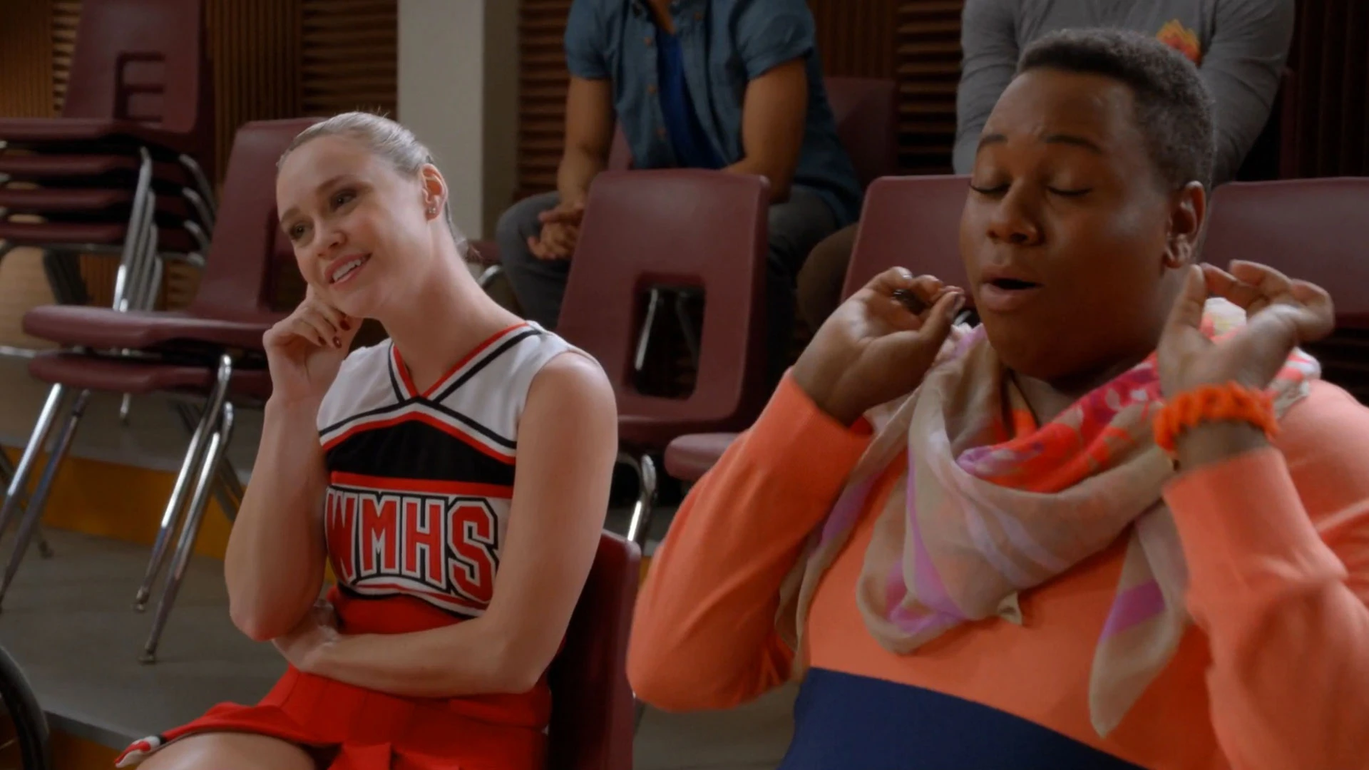 Zu Beginn von Katy oder Gaga ist Unique im Chorraum und sieht sich mit Marley die Trophäen der New Directions an, wenn Mr. Schue herein kommt und mit ihnen über ihre Gegner bei den Nationals redet.