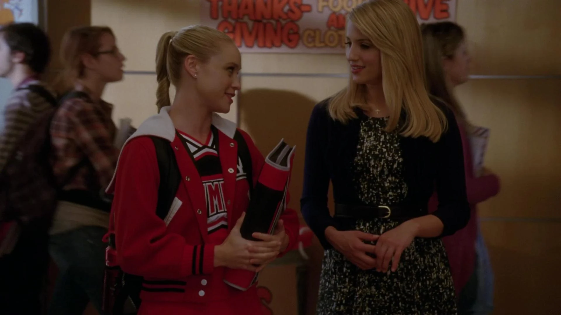Santana spricht Quinn darauf an, dass Kitty Marley Abnehmtabletten gegeben hat. Diese ist aber der Meinung, dass Santana nur neidisch ist, weil sie nur auf ein Cheerleader-College geht, während sie an der Yale studiert und einen Prfoessoer datet. Ihre Diskussion endet damit, dass sie sich gegenseitig ohrfeigen, worauf Brittany hinzukommt und wissen will, was los ist.
