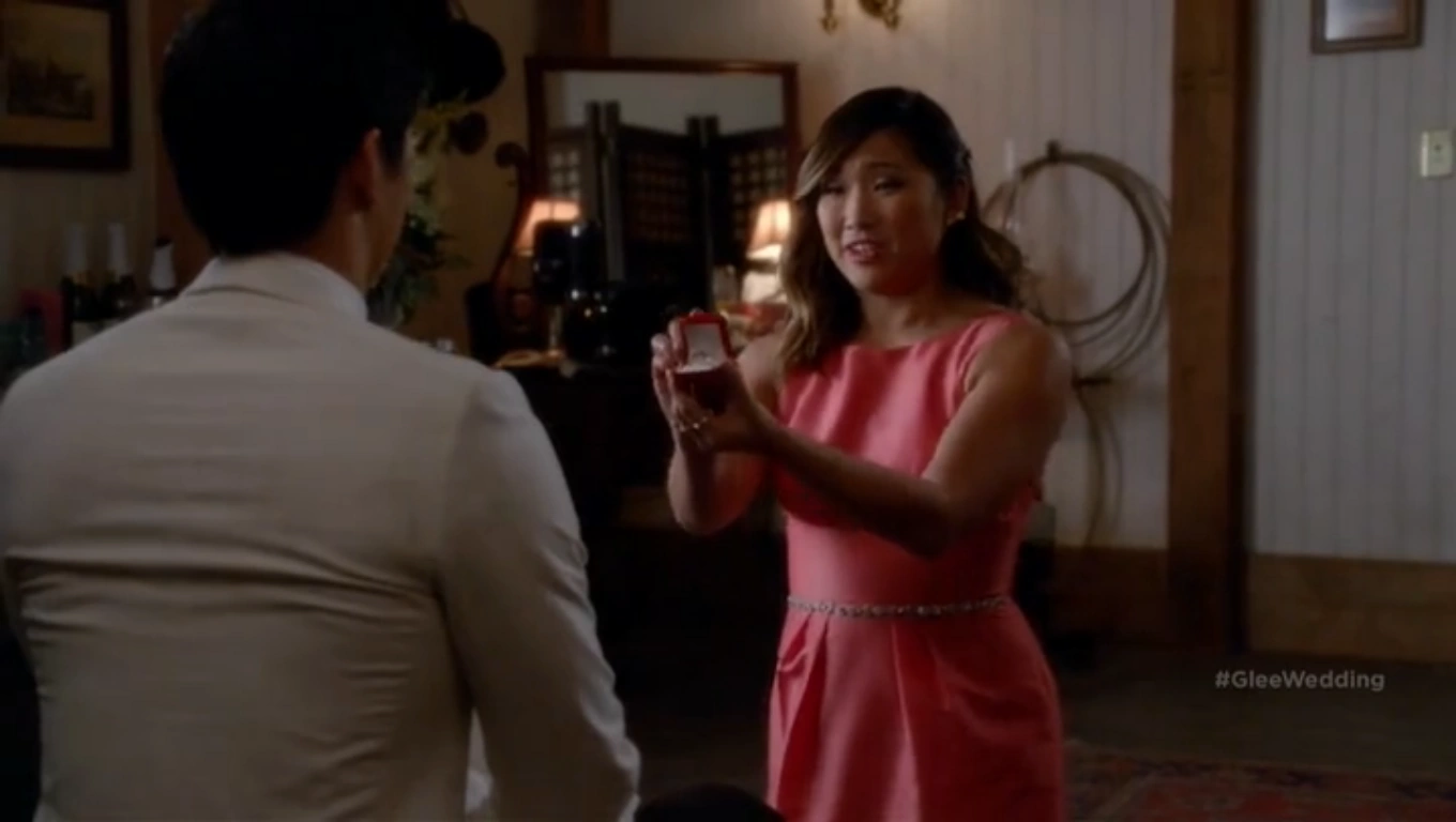6x08 | Tanto los antiguos gleeks como los nuevos ayudaran a poner a punto la boda de Brittany y Santana, la feliz pero nerviosa pareja se adentra en algunos detalles finales de sus nupcias. |