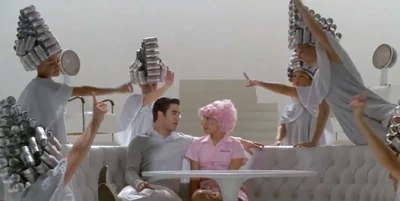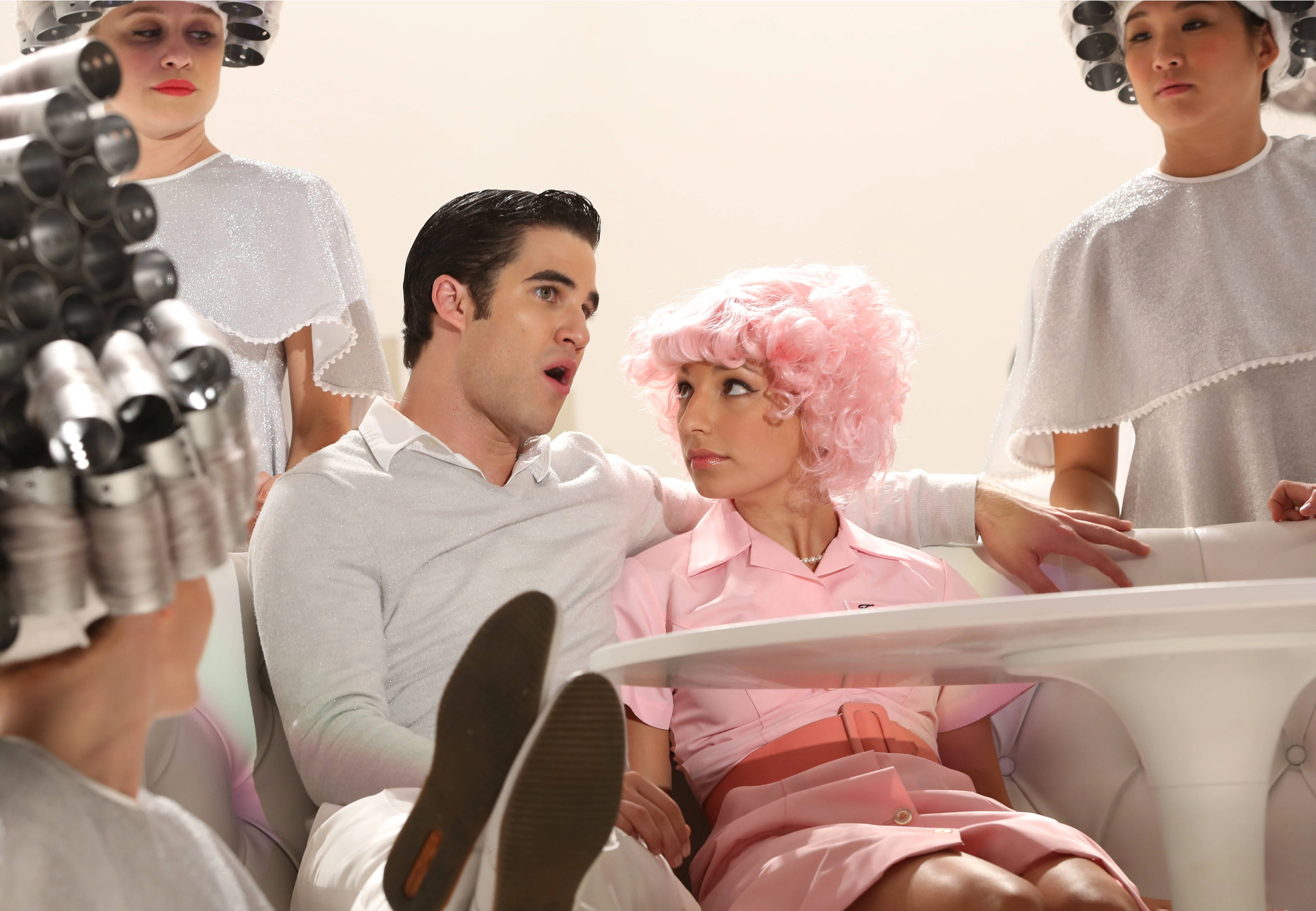 Blaine si trova alla cima delle scale, come L'angelo dei giovani. Blaine inizia a cantare. Sugar interpreta Frenchie ed è molto sorpresa. Will è tra il pubblico. I riflettori sono su Blaine e cammina per le scale. Le ragazze delle Nuove Direzioni ballare attorno a lui con i bigodini nei capelli, esattamente come in Grease. Blaine prende il manto di Sugar che cade a faccia in giù sul divano. Rachel e Kurt si guardano con soddisfazione. Blaine poi si siede accanto a Sugar mentre continua a cantare. Blaine canta, il suo sguardo viene fermato quando vede Kurt, e verso il basso. Rachel guarda verso Kurt, dato che si rende conto che Blaine ha guardato verso di lui. Verso la fine della canzone, Blaine lascia andare le mani di Suagr e sale le scale, ancora guardando Kurt. I riflettori si spengono il Blaine, Sugar sviene e il pubblico applaude, Finn è impressionato. Blaine guarda verso il pubblico, verso Kurt.