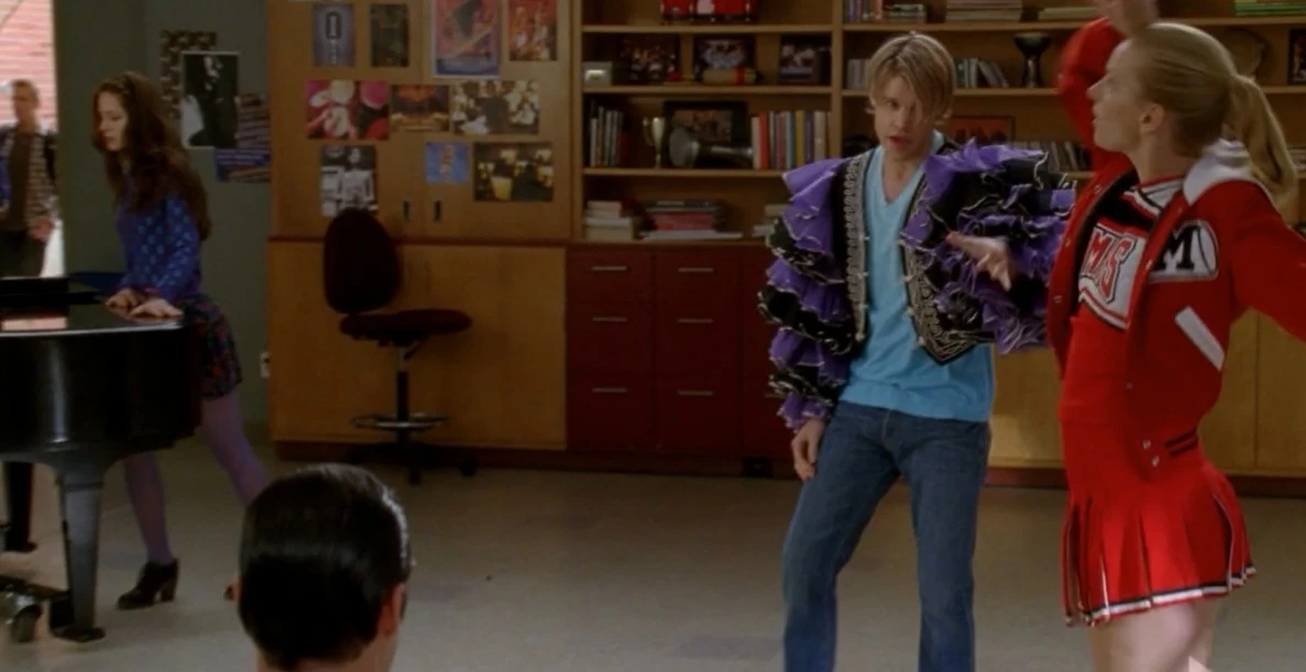 Sam with New Directions harmonising: