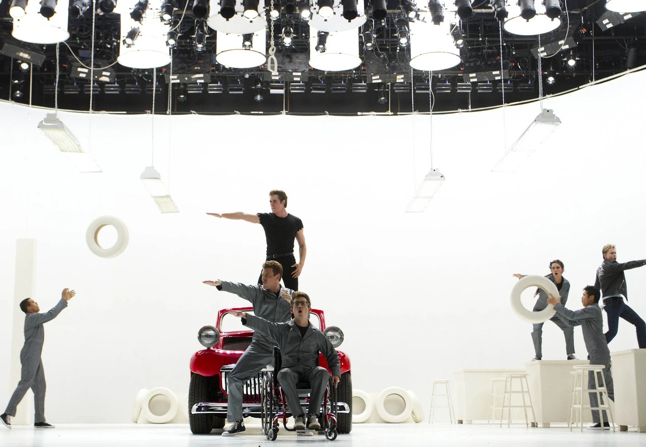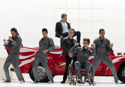 Greased Lightning è la prima canzone nell'episodio. Dato che l'auditorium non può essere utilizzato perché Sue lo ha ordinato per i suoi Cheerios, Finn deve trovare un nuovo posto per le prove del musical. Sam, Ryder, Jake e Joe e gli altri ragazzi delle Nuove Direzioni sono al Hummel Tires & Lube. Sono tutti confusi, e chiedono se devono provare qui. Finn esce da sotto una macchina e dice che è un luogo perfetto. Arrivano Mike e Artie. Ryder dice che non riesce nemmeno a cambiare l'olio nella sua auto e non riesce ad aggiustare un auto. Jake dice che non riesce a credere che Ryder lo abbia battuto. Finn dice che per saper recitare la parte serve conoscere il materiale e di come si sente a sporcarsi di grasso. Joe chiede come faranno a provare senza un palco, e Finn dice che si devono immaginare il pubblico in attesa per il loro arrivo, e di immaginarsi i riflettori. Finn apre il tronco anteriore della vecchia auto e chiede Ryder cosa vede. Ryder dice di vedere un vecchio tonfo, ma Finn dice di guardare di nuovo e capire quello che vede Danny Zuko. In quel momento inizia Greased Lightning. Ryder guarda nel tronco mentre canta, si toglie la giacca. I ragazzi iniziano la performance. Sam canta con Ryder e con i ragazzi delle Nuove Direzioni, Mike e Finn. Tutti cantano e ballano. Finn e Artie guardano i ragazzi, soddisfatti. Ryder va sotto l'auto e riesce nell'Auditorium con gli stessi vestiti indossati da John Travolta in Grease. Ryder e Sam sono in giacche di pelle e gli altri ragazzi sono con la tuta da meccanico. Ryder ha i capelli di Danny Zuko. Questa volta, Finn e Artie si uniscono alla performance. Ryder sale su una piattaforma tenuta da una catena che lo solleva. I ragazzi iniziano ad applaudire e puliscono la macchina, Ryder scende dalla piattaforma e sta sopra l'auto aggrappandosi ad una catena. I ragazzi mettono un vetro sopra il tronco anteriore dell' auto. La performance finisce con una posa. La fantasia finisce e i ragazzi tornano al Hummel Tires & Lube. Finn e Artie applaudono. Finn dice: "Wow ... Proviamo di nuovo con ehm .. il doppio dell'energia!"