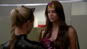 Kitty però la rassicura, dicendole che se sembrerà anche solo minimamente grassa sarà onesta e glielo dirà. Nel bagno delle ragazze, Marley è ancora insicura del suo aspetto e teme ad uscire dal bagno. Su istigazione di Kitty esce e mostra il vestito che le ha fatto la madre, dicendo di chiamarsi Wurstel Fiorito. Kitty, scioccata dal nome, la ribattezza Woman Fierezza mentre proclama se stessa come Femme Fatale. Insieme lasciano il bagno e vanno a braccetto in Aula canto, cantando Holding Out For a Hero, dando dimostrazione di come abbiano imparato a fare lavoro di squadra.