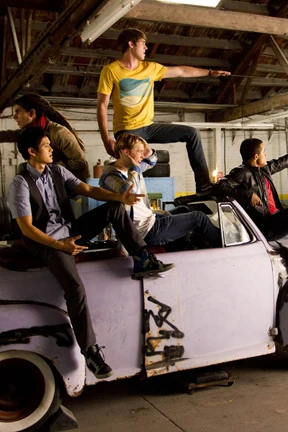 | Le provinciali si avvicinano sempre di più per il glee club, che scopre di essere stato derubato del trofeo vinto alle Regionali dello scorso anno, dai membri dei Warblers. Finn si trova già alla deriva come nuova guida del Glee club, infatti ha fatto entrare nel club Kitty, che è odiata e mal sopportata da tutti, e ha avuto un'idea banalissima per le provinciali: interpretare il tema dello "straniero", con canzoni in lingua e i costumi dei vari paesi. I membri del Glee restano molto delusi perché, essendo campioni, per poter vincere devono mantenere standard molto alti e superare i loro limiti. Blaine abbandona quindi la lezione per cercare di recuperare il trofeo, e si imbatte nel nuovo capitano dei Warblers, Hunter, che gli fa una proposta interessante: le Nuove Direzioni riavranno il trofeo, se i Warblers riavranno Blaine. Viene incastrato da un blaizer e dall'improvvisazione Dark Side di Kelly Clarckson, ma riuscirà il nostro eroe a non farsi tentare dal lato oscuro? C'è solo una risposta: No Thanks, anche se per un attimo si è temuto il peggio! Finn intanto ristabilisce il controllo cercando di unire i membri del Glee che sembrano più restii a cooperare, e propone due duetti: Marley con Kitty e Jake con Ryder…vestiti da supereroi. Jake e Ryder si buttano su una canzone dei R.E.M, Superman, ma il duetto finisce in un rissa tra i due. Finn per farli riappacificare li costringe a raccontarsi l'un l'altro le proprie paure. Jake ammette quindi di non sentirsi parte di nulla, essendo mezzo bianco e mezzo nero, Ryder fatica a leggere e scopre così di essere dislessico. Invece nella performance di Kitty e Marley, le due sembrano aver trovato una certa complicità. | ||||