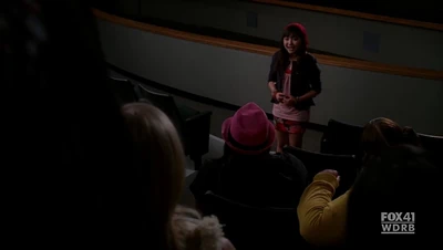 She explains why she wants to help the New Directions with their benefit concert. She says that she understands what it's like to be in a decathlon group, where no one pays any attention to you. She also says that she has hundreds of Twitter followers, whom she can get to arrive at the benefit to help raise money for the New Directions' trip to Nationals.