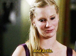 - When Brittany says goodbye to the New Directions, she mentions that she and Artie slept together and Blaine looks surprised. However, back in Season Three, episode The First Time, just after performing Tonight, Artie says in front of Blaine that he lost his virginity to Brittany.