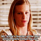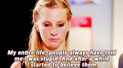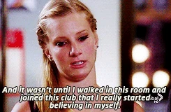 My entire life, people have always told me that I was stupid. And after a while I started to believe them. And It wasn't until I walked in this room and I joined this club that I really started believing in myself. And as soon as I did that, as soon as I started believing that maybe I was smart after all, I think the whole world did, too. And I'm really gonna miss you, guys. 'Cause you guys are like my family. |