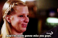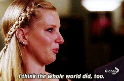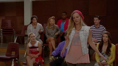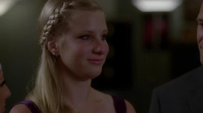 During their show circle, Brittany reveals that MIT offered her an early admission and wants her to leave immediately, causing her to have a meltdown. Having been told she was stupid her entire life, she feels that when glee club helped her believe she might be smart after all, the whole world started to believe it, too. Paying a tearful tribute to her friends, especially Sam and Santana, she says that they're like family to her and that she's really gonna miss all of them, before heading into her final performance.