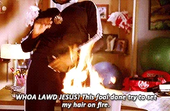 Oh! Lord Jesus, this fool done tried to set my hair on fire! |