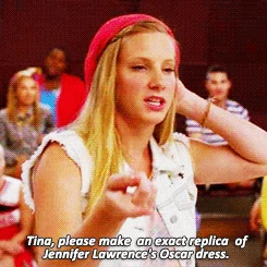 Brittany: Tina, please make an exact replica of Jennifer Lawrence's Oscar dress. Tina: Aaahnn, no. |