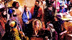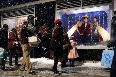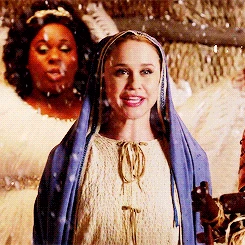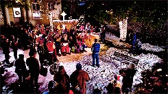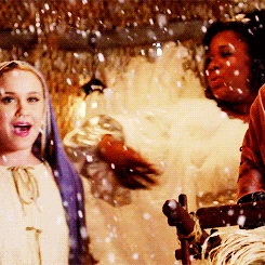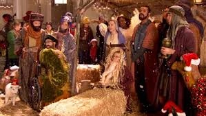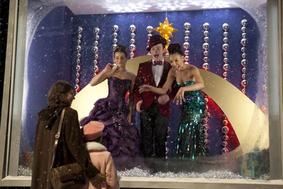 Kitty receives the part of Mary and Sam and Tina offer the part of Baby Jesus to Becky. They prepare for their Nativity scene and as the scene begins, the group sing Away in a Manger. In New York, Rachel has offered Kurt and Santana a second job, this time ensuring their protection. Behind a glass window in a street, the three sing too as people walk past and watch them in time to take in the Christmas spirit.