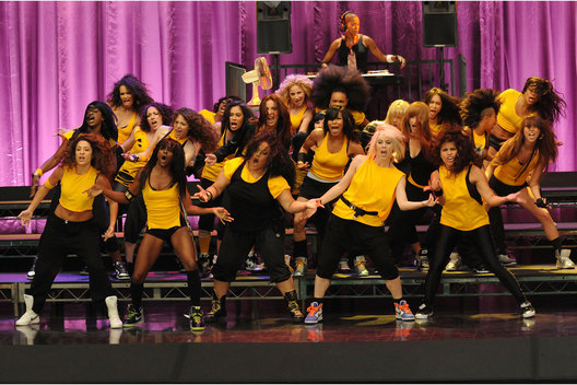 - One of Glee's choreographers, Brooke Lipton, is seen as part of this performance.