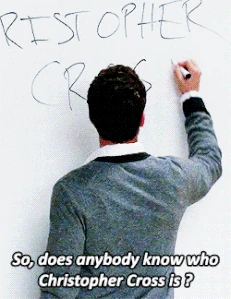 Will attempts to set New Directions an easy-listening assignment, talking about artists such as Christopher Cross and Michael Bolton. The kids have no idea who the artists are. When Will discusses Christopher Cross, Tina says, "Never heard of him, don't wanna hear about him." Brittany says Christopher Cross discovered America (a mix-up with Christopher Columbus) and Finn nods in amusement. Kurt informs them there is a Facebook group petitioning the club to perform a Britney Spears number at the McKinley High homecoming assembly. Brittany is against the idea, since her name is "Brittany S. Pierce" (which can be pronounced as Brittany Spierce) and has lived her whole life in the shadow of Britney, knowing she will never be as famous or talented. With this situation, Mr. Schuester justifies turning down the idea.