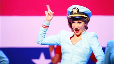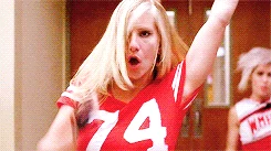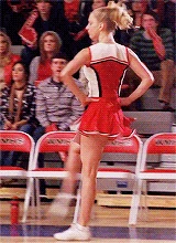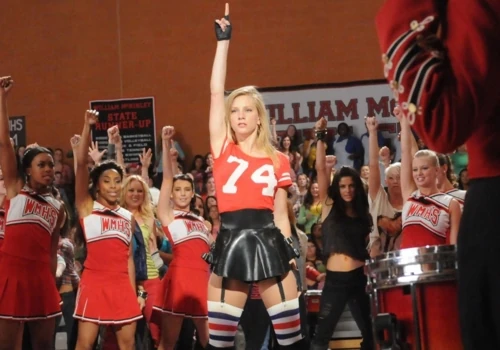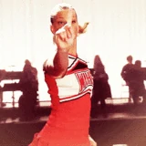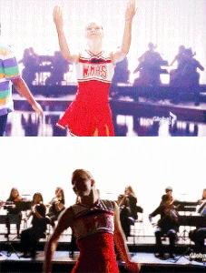 Brittany appears doing the dancing number California Gurls along with her fellow Cheerios, but later she, along with Santana and Quinn, is forced by Sue to choose between the Cheerios and Glee Club, with the risk of being shot from (and possibly killed by) a giant cannon so Sue can win the cheerleading Regionals competition. At first, she chooses the Cheerios, but when Finn arrives and asks her if it's really worth it to risk her life instead of doing something she loves, she chooses Glee Club and tells Sue that she's quitting the Cheerios. She arrives in time to perform Thriller/Heads Will Roll and supports the football team along with the other girls.