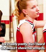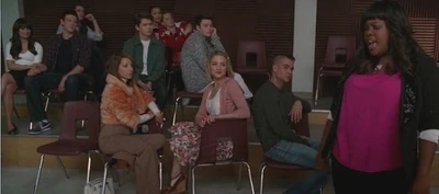She and the rest of the Cheerios watch Glee Club singing Push It during a school assembly. She, along with Quinn and Santana, audition for New Directions. She performs background vocals in I Say a Little Prayer, and becomes one of Sue's spies in the club. She also attends the Celibacy Club meeting earlier in the episode.