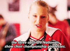 Brittany goes with the Glee Club to Vocal Adrenaline's high school, Carmel High School, to get Dakota Stanley to choreograph for them. He accepts and later remarks that she and the other Cheerios don't need to "change a thing".