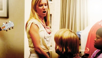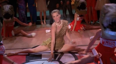 The Glee Club is cast in a local mattress commercial, in which Brittany performs background vocals and several impressive acrobatic stunts in Jump.