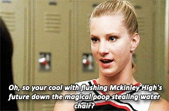 Brittany reveals to Santana that she posted a sex tape of them with clips of her cat Lord Tubbington online. It was her intention to help Santana become famous. In the library,