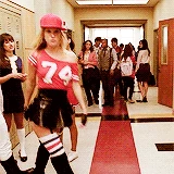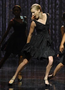 Brittany, Santana, Mercedes, Kurt, and Blaine discussing why New Directions beat the Troubletones, leading toWanna Be Startin' Somethin'. Meanwhile, she dances to Bad.A picture of her is visible in Quinn's locker during Never Can Say Goodbye. She dances and sings along to Black or White.