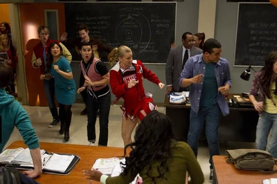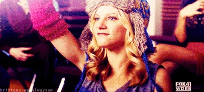 Brittany joins the rest of New Directions in enthusiastically decorating the choir room while