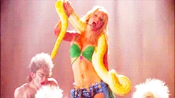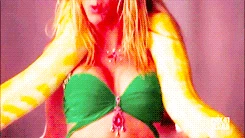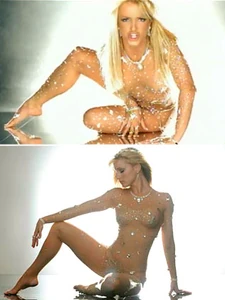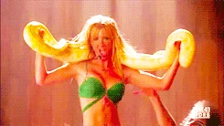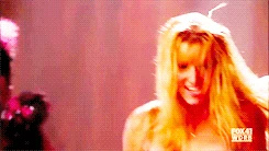 She goes to Carl's office, which she says looks like the room on the space ship where she got probed. When he puts her under to work on her teeth, she enters a vivid Britney fantasy, during which she sings her very first solo in I'm a Slave 4 U (in which she wears several famous Britney Spears costumes, including the infamous diamond bodysuit). The next day, she's back at the dentist's, this time with Santana, insisting to give them both anesthesia (although Santana has perfect teeth), they sing Me Against the Music. After her anesthesia sessions, Brittany appears more confident, claiming she should have all glee club solos in the future; she does get to perform a solo in Toxic.