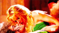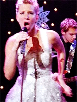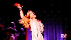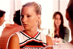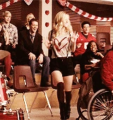 At the beginning, she is with the girls listening to Mercedes and then they sing Summer Nights. She is seen holding hands with Santana during Rachel's performance of Without You. During a flashback in The First Time Ever I Saw Your Face, a flashback of Brittany and Santana in the Cheerios is shown, with the two sharing a lovely look. She also performs with the New Directions during We Found Love.