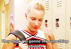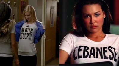 Brittany appears to be jealous when Santana pretends to be in love with Karofsky. In the hallway Brittany shows Santana her "Born This Way" shirt, which reads, "I'm with stoopid [arrow pointing up]." Santana then shows Brittany