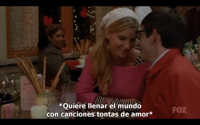 She attends the Sugar Shack atBreadstix with Santana. The God Squad sings her Cherish/Cherish, which is from Santana. She gets up and dances with Santana during the song. At the end of the song her and Santana kiss. She sings Love Shack after that with Kurt, Blaine, Rachel, Sugar, and Mercedes.