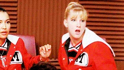 Brittany decides to join in Booty Camp now as well to try and dance into her "voters hearts." In It's All Over with Mercedes singing Brittany is Miss Perfect running for class president and all, but Santana defends her. During Out Here On My Own Brittany and Santana are sitting next to each other in the auditorium to watch the "Maria Off." At the end of the episode in the song Fix You lead by Mr. Schuester Brittany is seen singing in the third row next to Kurt and Santana and when Santana gets the role of Anita in the school play, Brittany seems ecstatic for her and they laugh together.