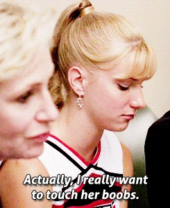 Brittany has a pregnancy scare because she had seen a stork by her window the night before (implying that she still believes that storks bring babies). Holly addresses this and breaks into song with the number Do You Wanna Touch Me (Oh Yeah) while Brittany and Santana sing and dance back up for her. Later, while Brittany stays over at Santana's house, she asks her about what their relationship with each other means and is wondering if they should talk to Holly about it. It is revealed that Brittany and Santana are still sleeping together despite Brittany being in a relationship with Artie, though Brittany is not aware she is cheating as Santana convinces her that you can't cheat on a boy with a girl. Santana eventually agrees to talk to Holly about their relationship, and Brittany explains she doesn't know how she feels about it because Santana never seems to want to talk about it. Holly advises them to get it out in song and Santana has a song already chosen for the event, but she needs Holly's help.