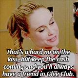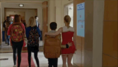 In the hallway, Kitty talks to Myron (who is standing on a stool). He places the stool in his locker and states that he'll never forget that she lent her underwear for the performance, handing her money. Kitty, not caring where the money came from, states she does deserve it. Myron states that if she sticks with him, she'll never go hungry, giving her more money and expecting a kiss. Kitty, saying no, states that he should keep the cash coming because she'll be his friend in glee club, as he needs one. They walk away as Myron continues to flirt with Kitty.