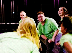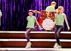In the choir room office, Will sits as Rachel states that the glee club has changed for the better since Alistair and Myron joined. Will tells her that some kids will disappear while others will touch their lives, and it's best to make a difference. Rachel says that he made a difference in her life, to which he responds the same sentiment. Will states that she has evolved into an intelligent person and is happy to work with her, which she agrees with. They hug as the New Directions begin singing Cool Kids, with Jane and Mason taking the lead, followed by Madison and Roderick, and the rest of the group joining in. They all dance together, and as the song ends, they join together. Will and Rachel applaud them.