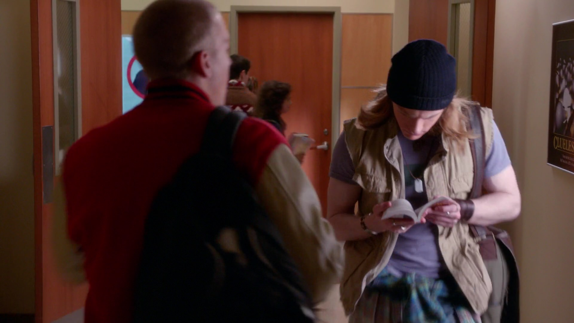 Mason approaches Jane in the crowded hallway and suggests doing a duet together. Jane informs him that she's already paired with Roderick. Mason asks if Roderick is taking her for pizza and wonders if Madison is aware. He states they won't tell Madison and says he's a badass. Jane agrees and mentions that he's also a cheerleader. Mason tries to bring up what people say about cheerleaders, but Jane doesn't respond. Jane suggests that if they let everyone know they're switching partners, they'll be fine for the duet. She walks away smiling, and Mason also smiles.