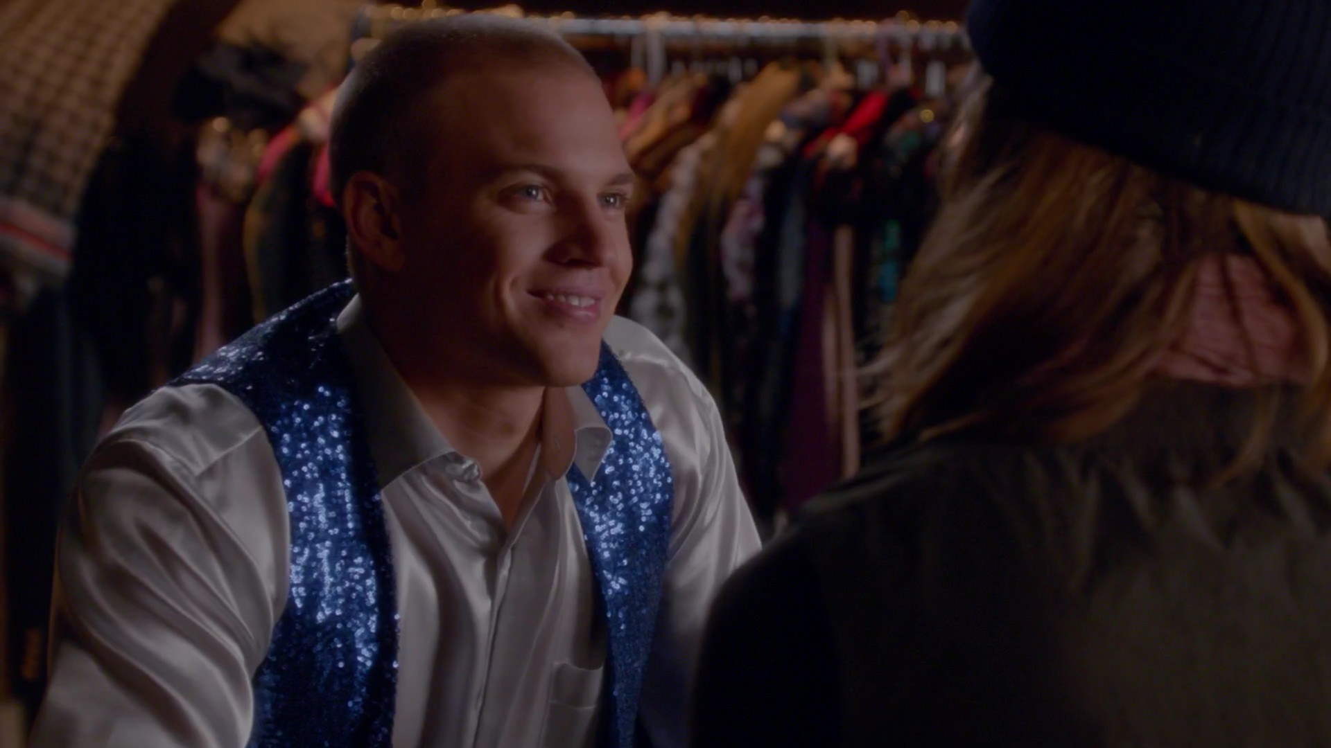 In the choir room, Madison walks into Mason putting his clothes back, wearing a bedazzled set. Mason states that he already knows what she's going to say, but she replies he doesn't. They sit, and Madison states how his performance was really moving, reminding her of how gifted he is and how crazy she has become (to which he contradicts). She continues, saying that she was feeling jealous that another woman had come into his life. But she states that now she's relieved that he doesn't need her anymore and that he might have never actually needed her. Mason cuts her off, saying that he'll always need her, but he needs a bit more room for other people. She talks about how she's used to taking care of him, feeling she had to. Mason tells her that he's a better person because of her. She states the same thing about him. They hug. Madison then states that Jane is a stage hog, to which they both laugh.