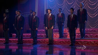 The Warblers are rehearsing Misery. Later, after the mascot Pavorotti suddenly dies, the Warblers sing back-up for Kurt in Blackbird. At a Warbler meeting, Blaine proposes a duet between him and Kurt, which they all support. The Warblers compete at Regionals, but lose to New Directions.