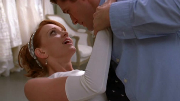 Will goes to the wedding and finds Emma sitting alone. Ken has dumped her, saying moving the wedding for sectionals was the last straw. She admits that she moved the wedding for Will and not the kids. She tells him that she has emailed her resignation to Figgins because she doesn't want to be at the school anymore as she is ashamed of her actions towards Ken and heartbroken over Will. He grabs her arm and tells her that he has just left his wife, but Emma feels it's too soon for him to move on. He tells her that she makes a beautiful bride in which she responds with a teary "thank you”. On the day of her resignation Will realizes that he can't let Emma go and he runs to her office, which is empty. He spots her across the hallway with a box of her belongings just as she is about to leave. He stops her and kisses her for the first time.