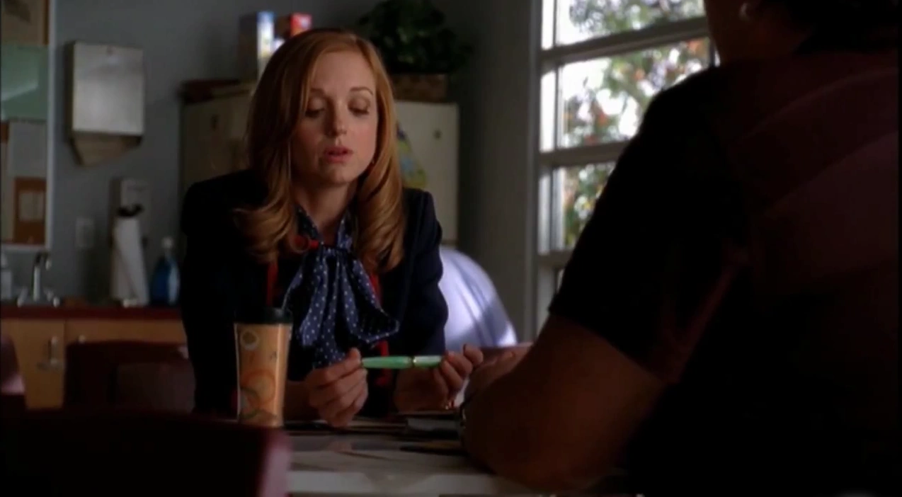 Later, Emma runs into Will during his janitorial shift. While she helps him clean, Emma confides that a childhood incident has left her hating messes. He helps her work through it by intimately putting chalk on her nose, and the two nearly kiss. Football coach Ken Tanaka sees the whole thing through the window. Ken confronts her about this and tells her that she is stupid for chasing a married guy. He tells her that he is a good man for her and that she won't do much better than him in their town. Emma is convinced by this and tries to put a stop to her and Will's flirtations by starting to date Ken.