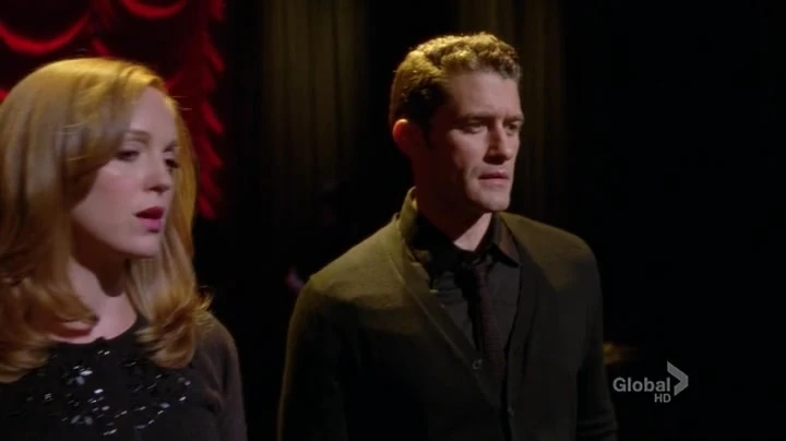 She sings along with Will in The Scientist with Finn, Rachel, Kurt, Blaine, Santana, and Brittany, and shows a flashback kiss they shared in Sectionals.
