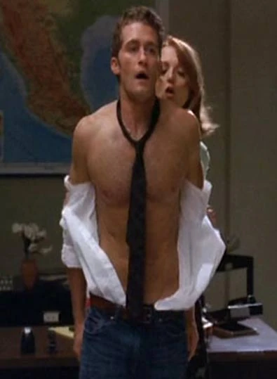 In Naked, Emma appears again in her office, with Blaine. Sam enters and ask what Blaine is doing there, to which