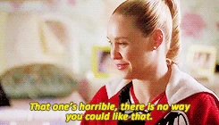Brittany tells Kitty that everybody hates her, and nobody want to work with her. Kitty said that she's trying to change but the pastor even said that Jesus takes a baby steps. Brittany then ask if she goes to church of Satan because she's really mean for calling Marley's fat even though Kitty's face looks like a soccer ball. Brittany then said that blonds have magical powers like doing splits and turning Swedish, she then said that Kitty must've use her power for good not for evil, that's why Brittany asks her to be her guest on Fondue For Two. First, Brittany introduces her guest as "McKinley High's biggest bitch, the girl with a lizard ears, Kitty."