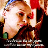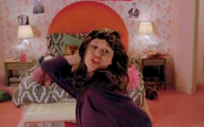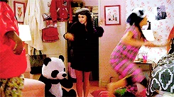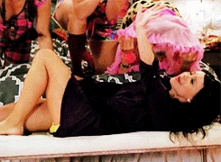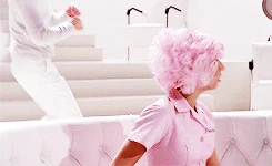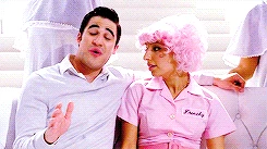 At the sleepover, Kitty mercilessly trots out donuts, and seeing Marley's panic, she takes her aside and not-so-subtly suggests that Marley should try a binging-and-purging approach. As Marley considers it in the bathroom, Kitty makes fun of her to the other girls with the Look At Me I'm Sandra Dee routine from "Grease."