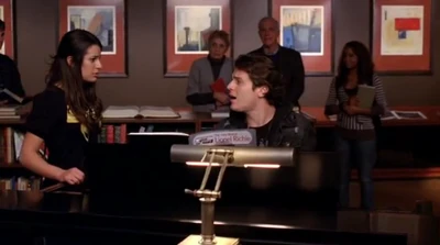 - When Rachel goes to the library to find a song, you can hear someone playing Tiny Towers in the background.
