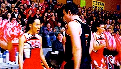 Finn sings this song for his "Hello" assignment in Glee Club, concentrating his thoughts on Puck and Quinn's relationship, as well as his remaining feelings for Quinn. This song is also meant to help him regain the groove he had previously lost. The song is sung through a basketball game, where Rachel cheers for Finn as does the crowd. As Finn walks around the school, Cheerios dance around him.