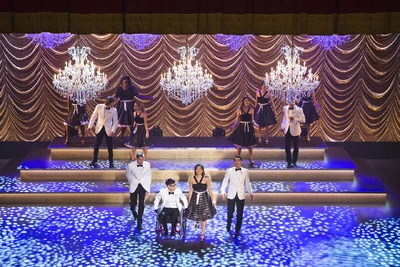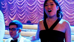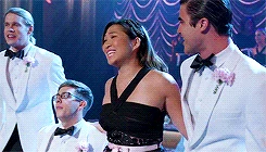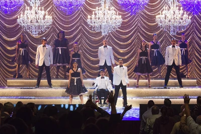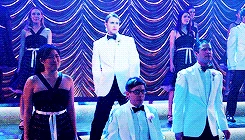 Artie, Blaine, Sam, and Tina with New Directions (Tina):