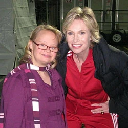 In 2009 Lauren received a phone call from Down syndrome in Arts & Media (Formally Hearts and Halos), an in-house talent agency of The Down syndrome Association regarding a potential role on Glee. Lauren auditioned and landed the part of Becky Jackson. She has said of her audition: “I auditioned for Becky, and Robert Ulrich was pretending to be Sue Sylvester, and he was really mean. But I made it through. They chose me, and I was jumping up and down, laughing and crying at the same time”.[6][7] She appeared in Glee’s first season in the episode “Wheels” and continues to guest star in the series until the present day.