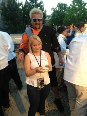 Lauren with Food Network chef, Guy Fieri at a 2013 International Best Buddies event.