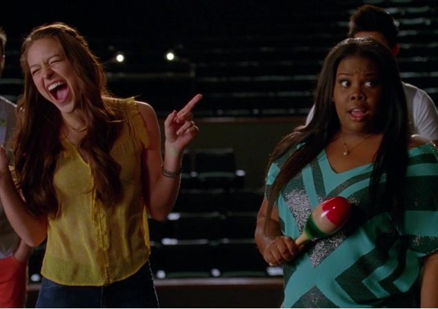 Marley is seen in the choir room towards the beginning of the episode. She appears very excited about the week's assignment and confesses that she