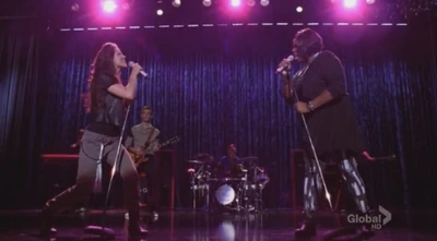 The two perform Holding Out for a Hero with thunderous applause from New Directions. Finn tells them that they nailed the assignment, and commends them for their teamwork. Marley is seen cleaning up graffiti with the rest of the club, throwing paint on Ryder, Jake, and Kitty, smiling. Ryder approaches Marley and tells her that they have to cancel their date due to his plans with his dyslexia teacher, and asks to reschedule. Kitty tells her that it sounds like Ryder is lying, but Marley rejects the idea, and empowered by the week, asks Jake out on a date. Marley and the rest of New Directions perform Some Nights, celebrating their anticipation of Sectionals.