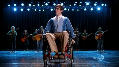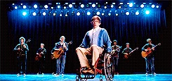 He sings this song after Brittany leaves him after he calls her stupid. Finn , Puck , and Sam walk around the school, playing the guitar and follow Artie as he sings his solo.